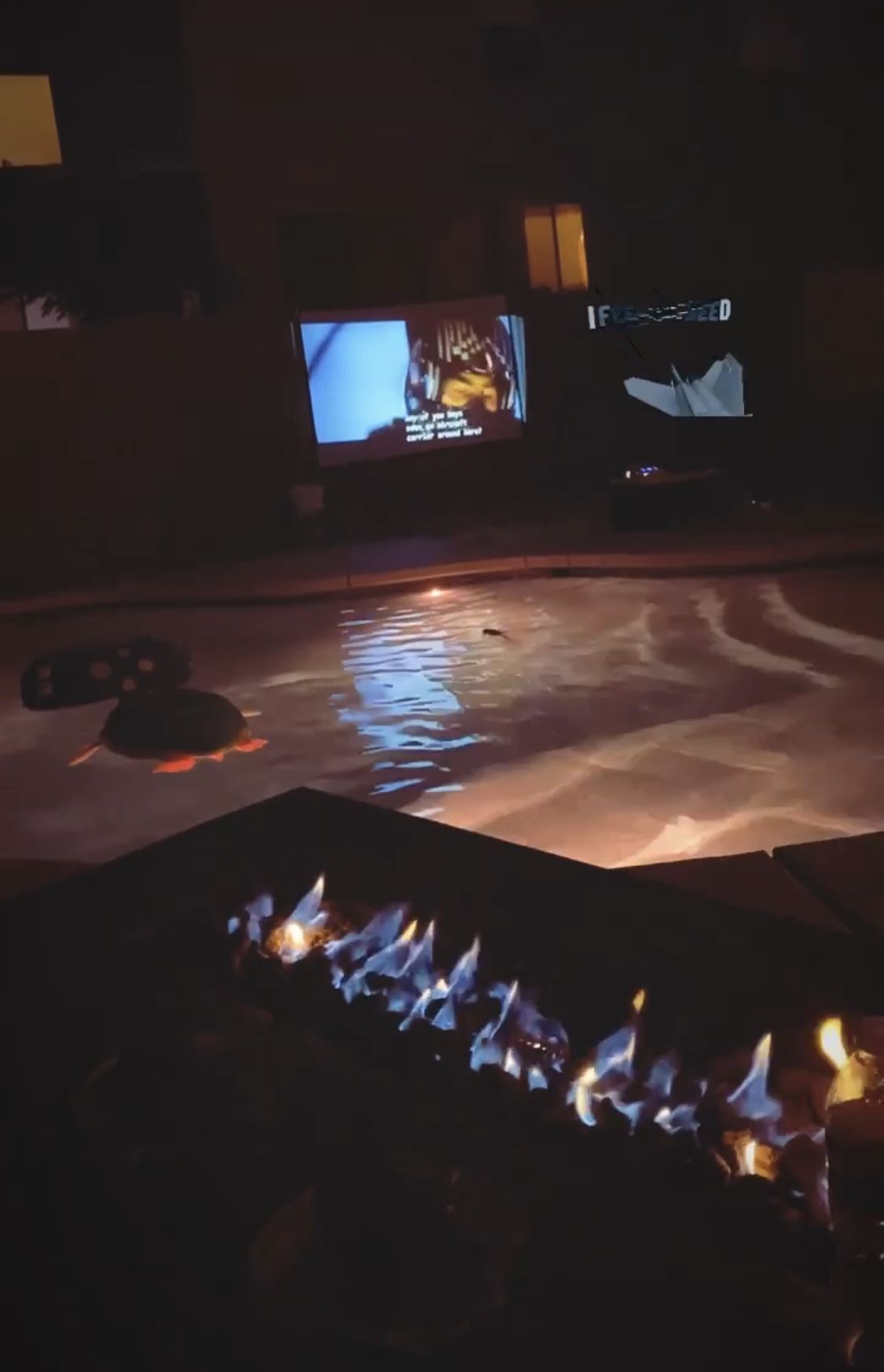 (Got this projector and can already tell we’re going to be using it all summer. It was super easy for the Pilot to sync it to his phone to project the movie, and also to our portable Bluetooth speaker for improved sound quality)
