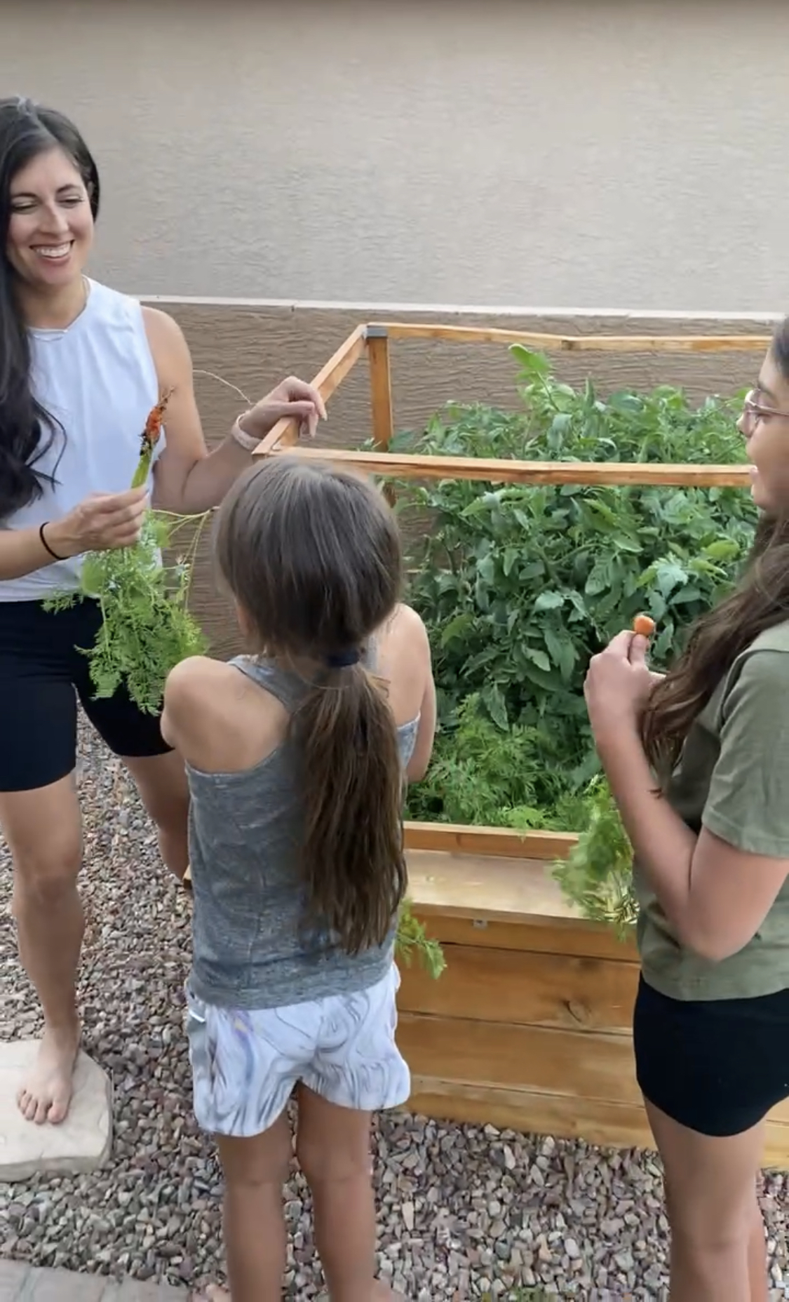 Having a little garden has encouraged them to try new things, too. They love going outside to pick carrots, bell peppers, or salad greens. (We have melons growing right now, too!)