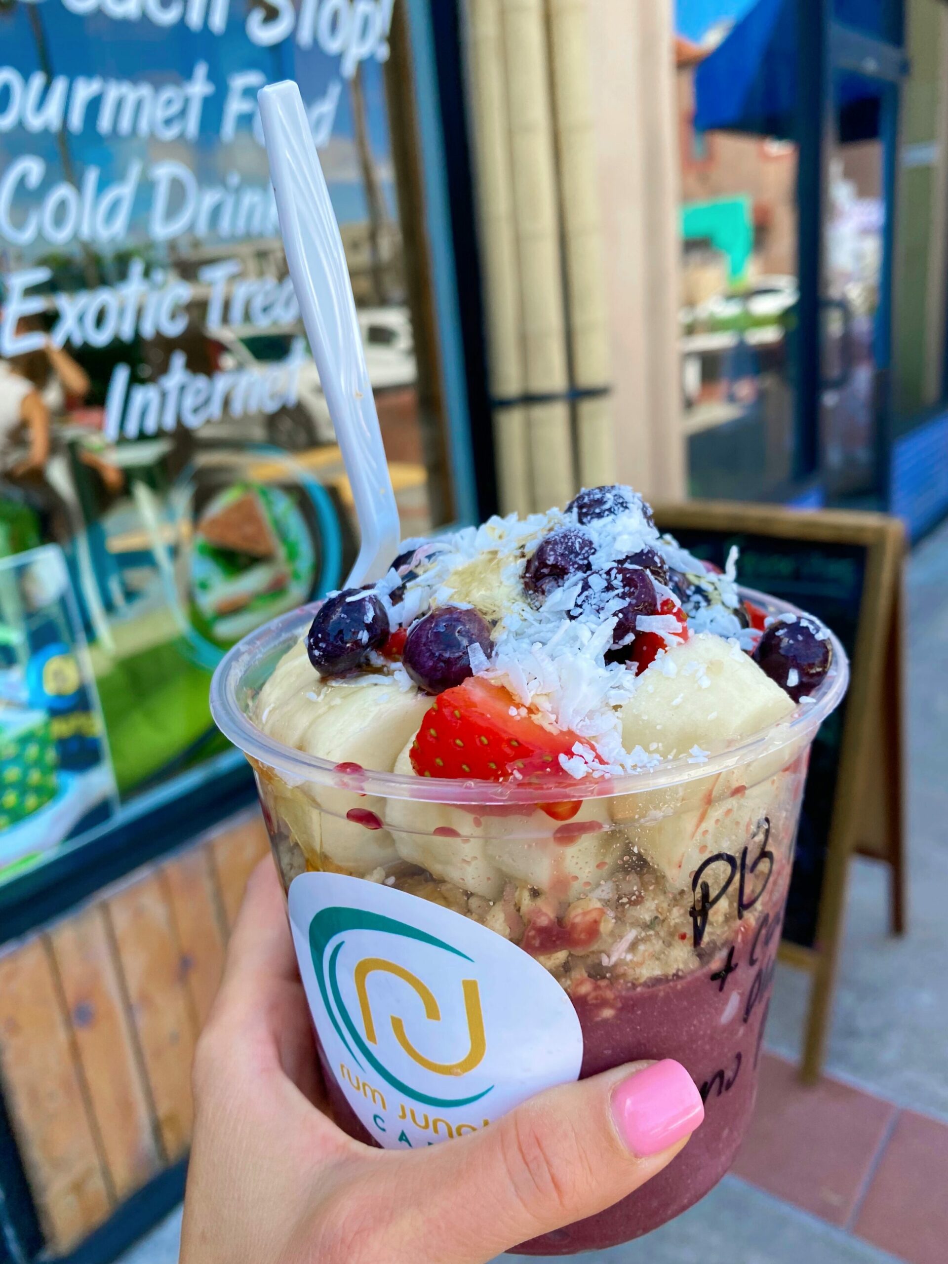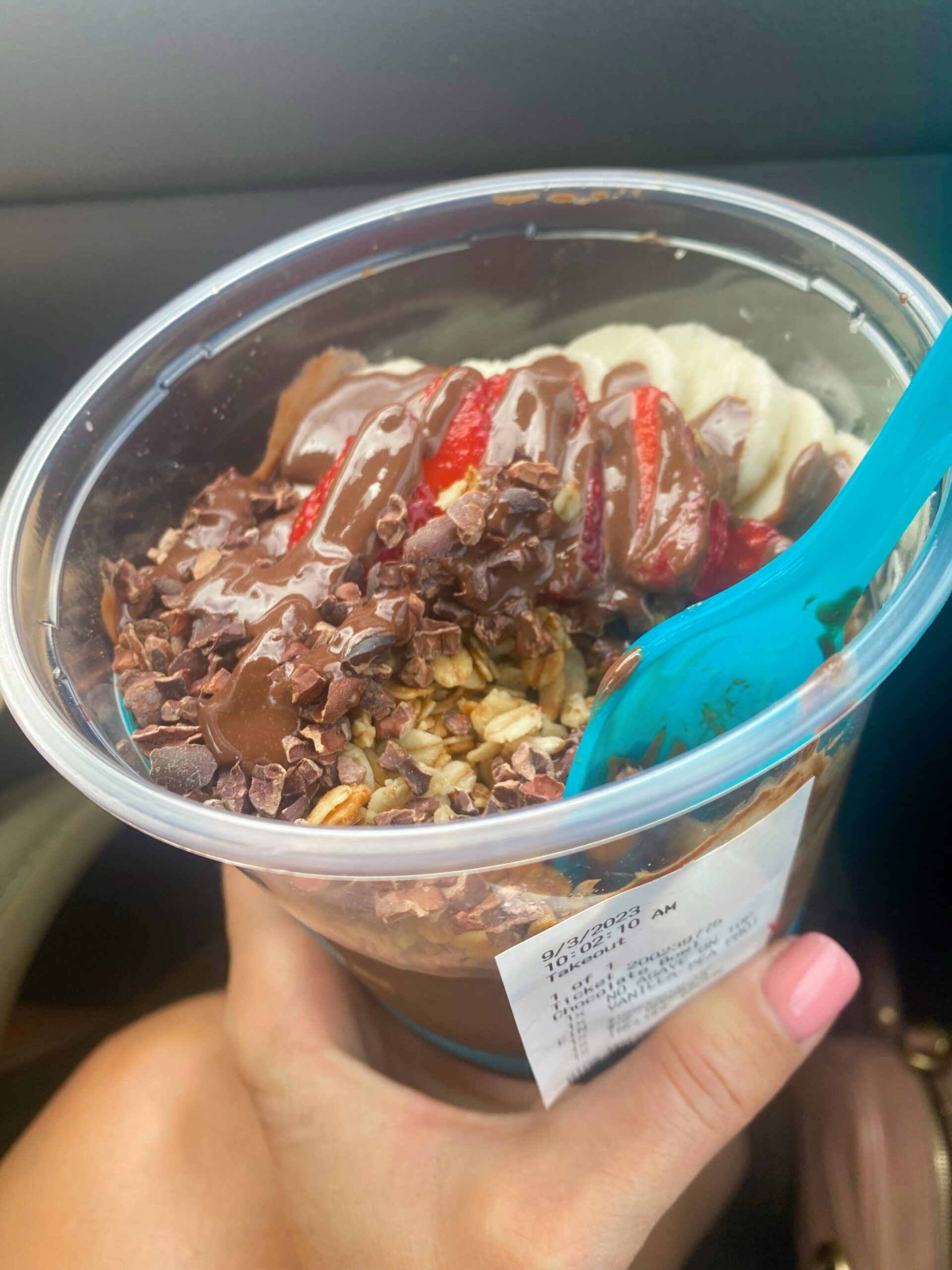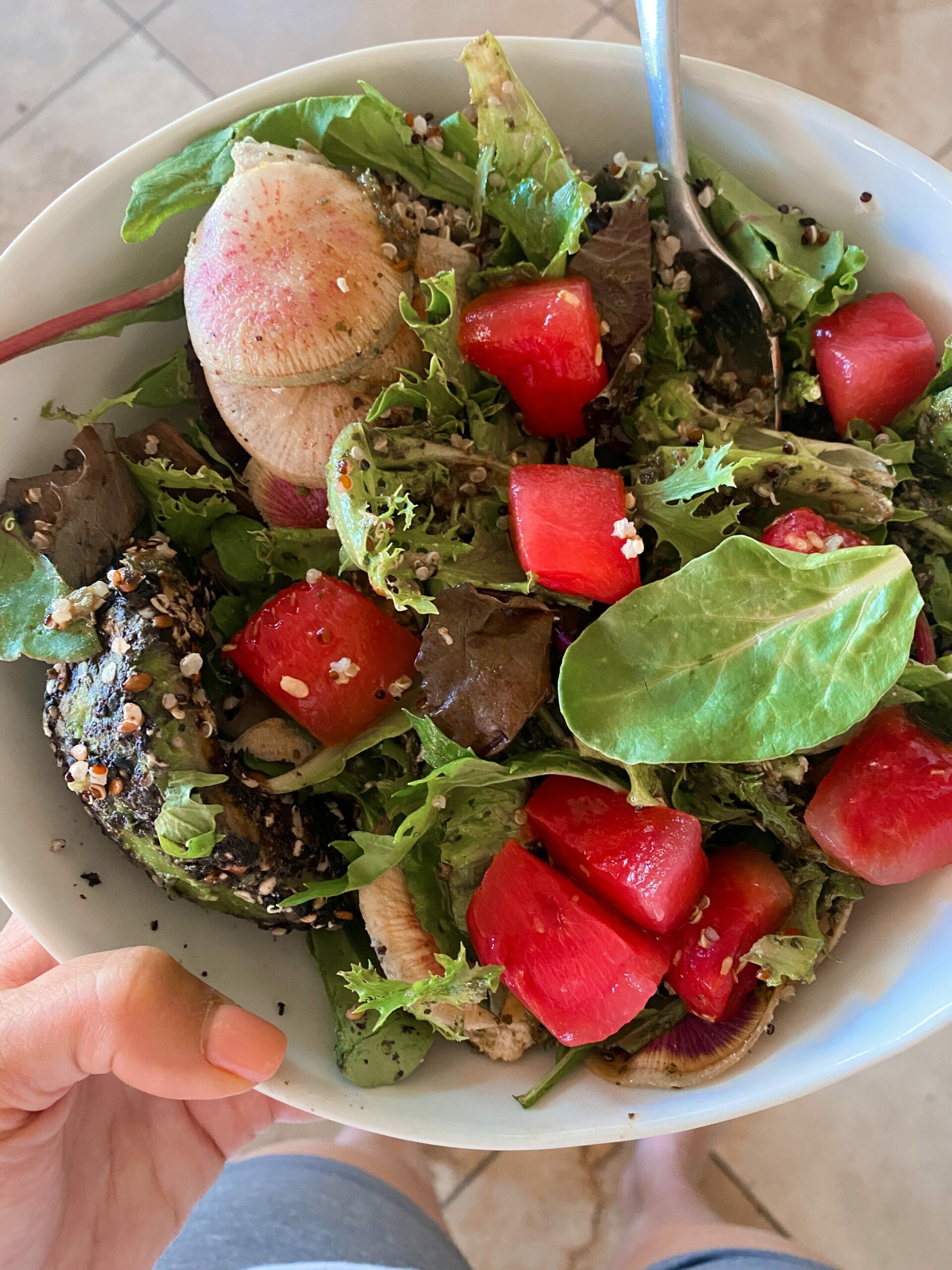 Lunch was acai bowls in watermelons, salads, and coffee,