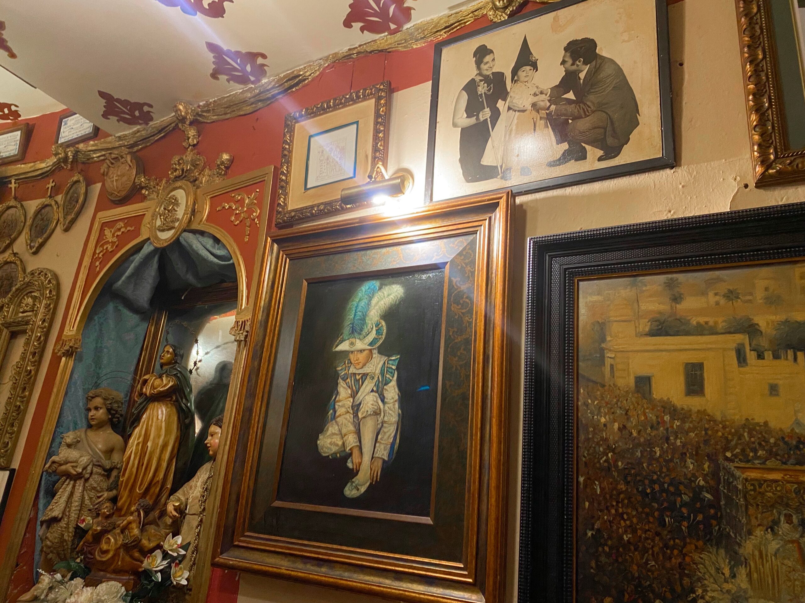 If you go to Sevilla, you have to check out Bar Garlochi aka Church Bar. This bar within an old church gave me Baz Luhrman vibes in the best possible way. It has slightly creepy, over-the-top baroque Catholic decor, including gilded angels, Mary statues, antique chandeliers (and probably the original velvet drapes), and fake flowers. You just have to see it to experience it.