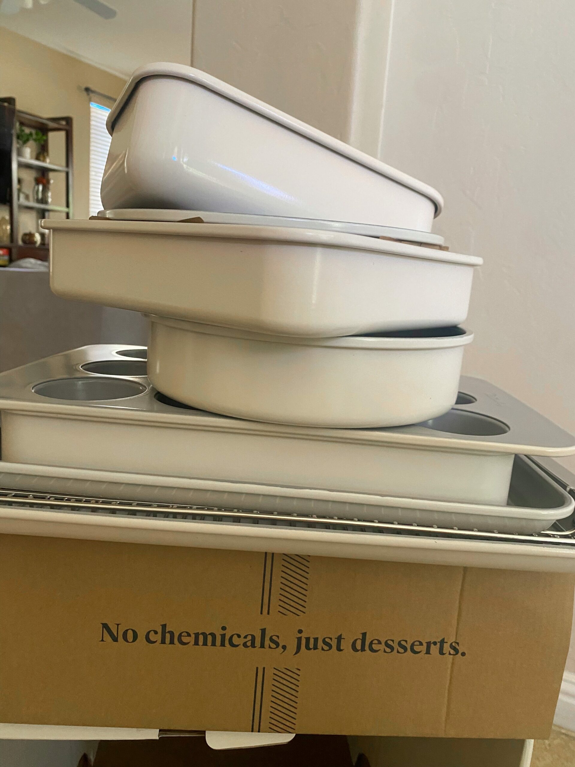 I absolutely LOVE this set and am so happy we added it to our kitchen. Our crusty old aluminum baking sheets went in the trash. These are sleek, functional, I don’t have to worry about harmful chemicals and metals, and also a better choice for the planet. They also heat beautifully; no worries about *hot spots* or uneven cooking. The peace of mind is #1. I’m always about controlling what we can control, and this has been an easy swap for us.