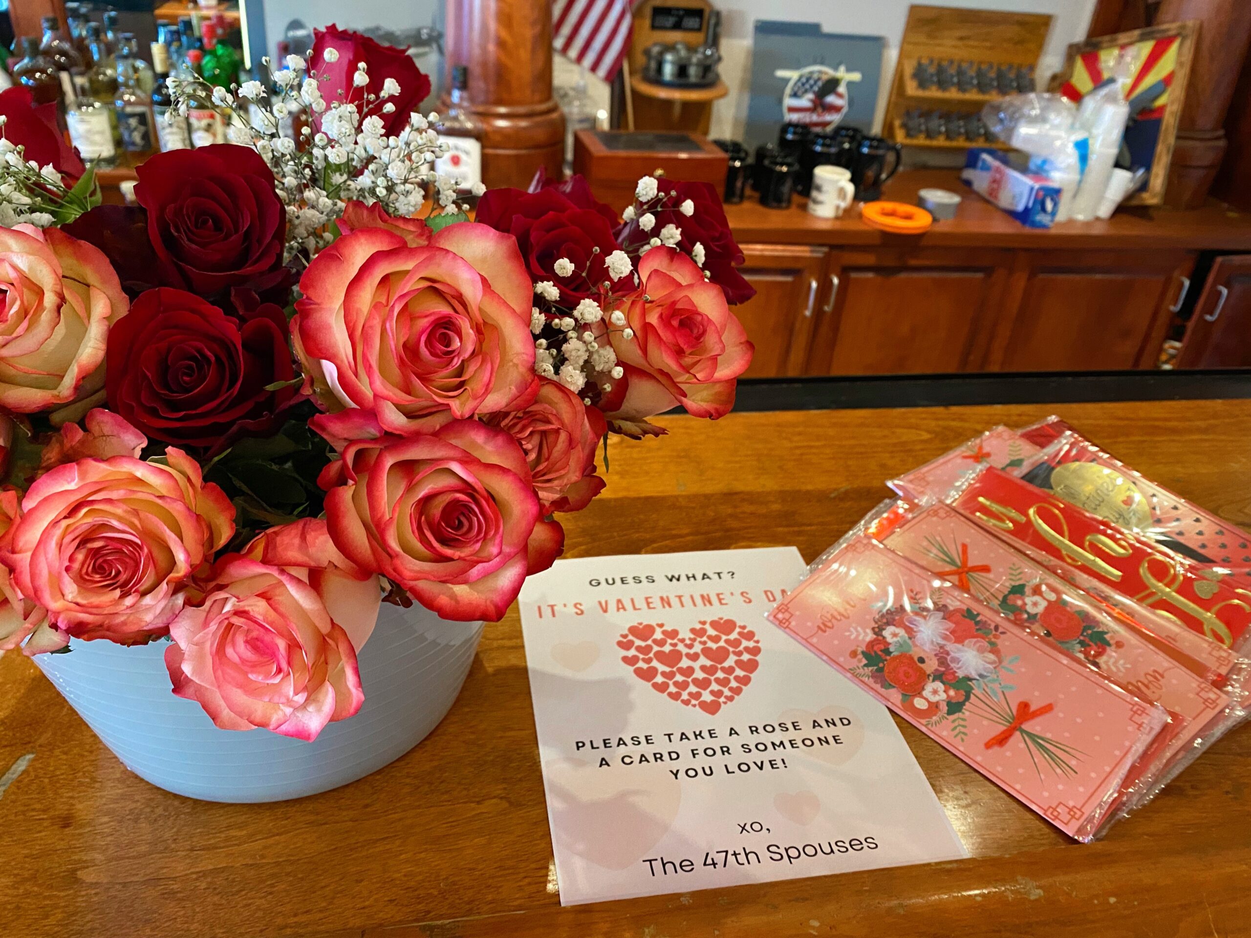 On the way, I picked up a few dozen Valentines donuts to leave at the bar for everyone to enjoy, along with cards and roses for their loved ones.
